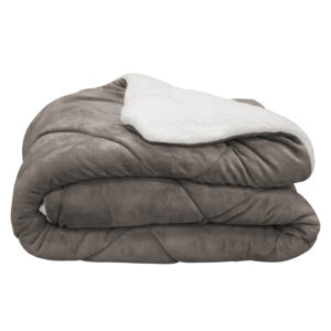 Κουβερτοπάπλωμα 240x220cm flannel – sherpa ανοιχτό γκρι